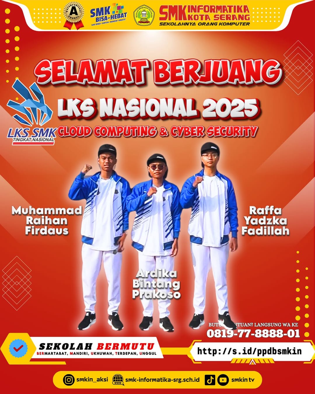 SMK Informatika Kota Serang kembali menorehkan prestasi membanggakan. Sebanyak 3 siswa SMK Informatika Kota Serang berhasil mewakili Provinsi Banten dalam ajang Lomba Kompetensi Siswa (LKS) Tingkat Nasional Tahun 2025.