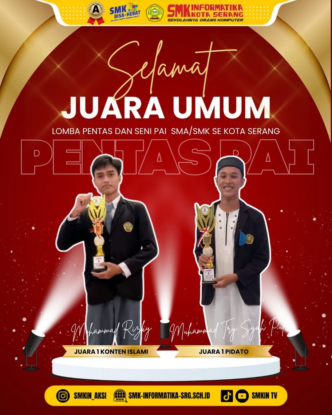 SMK Informatika Kota Serang kembali menorehkan prestasi gemilang dengan berhasil meraih Juara Umum Lomba Pentas dan Seni PAI Tingkat SMA/SMK se-Kota Serang Tahun 2025.